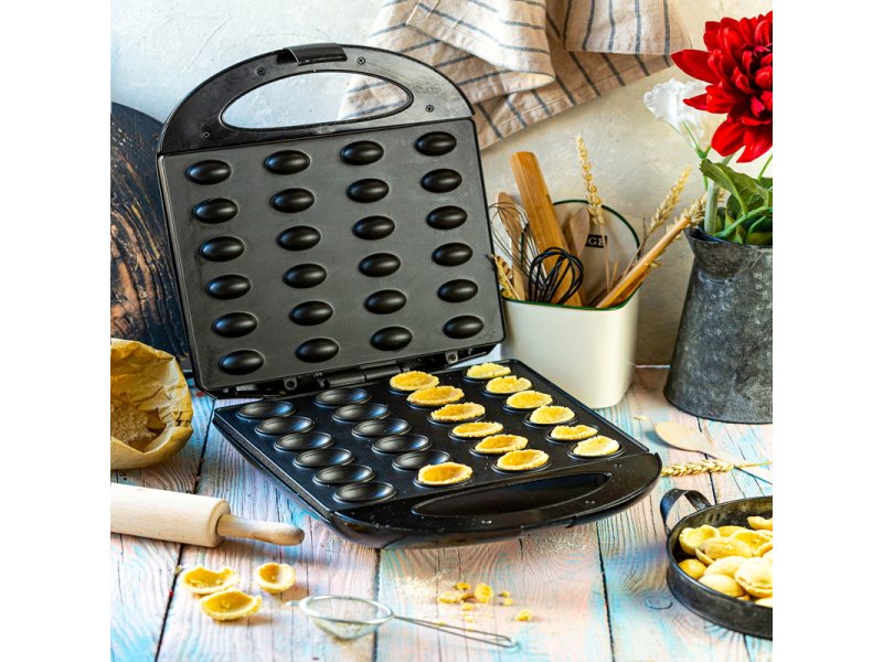 Tip Aparat za vafle oraščiće Snaga 1600 W Boja Crna Ostalo Napon 220-240 V 50 60 Hz Kapacitet 24 polutke 12 oraščića Vreme pečenja Do 2 minuta Ploče za pečenje Nelepljivi premaz Kućište