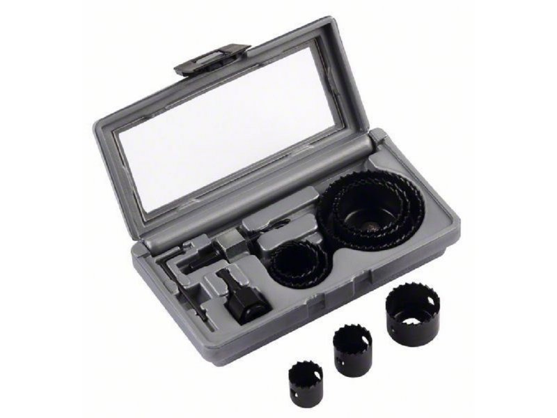 Karakteristike Tehničke karakteristike 8 HCS testera za otvore Ø 22 25 29 35 38 44 51 68 mm, L 23 mm 1 adapter veličine 8 mm 1 adapter veličine 1 4” 6,35 mm Pakovanje Plastični kofer sa prozorom i omotnim