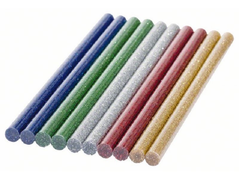 Karakteristike Bosch 2609256D31 osobine Štapići lepka sa šljokicama, Ø 7 mm Boje crvena, zelena, zlatna, tamno plava, srebrna 10 kom., šljokice Tehničke karakteristike Prečnik mm 7 Dužina