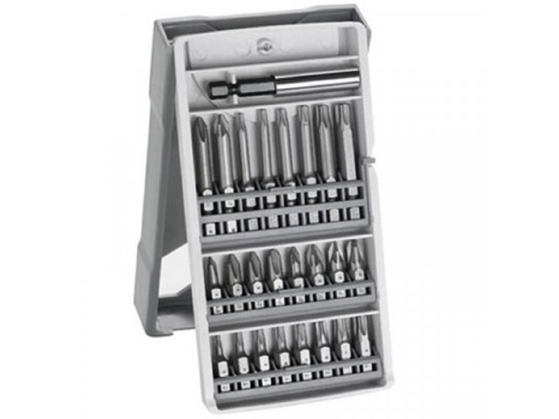 Mešoviti set uključuje bitove odvijača raznih veličina i magnetni držač bita koji se nalaze u kliznom preklopnom kuc ištu. Bitni pogon odgovara 1 4 ” a njihova dužina je 25 ili 49 mm. Može se koristiti