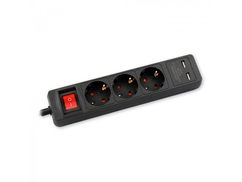 COMMEL Produžni Kabl 3m 3xšuko Sa Sklopkom + 2xUSB, Crni