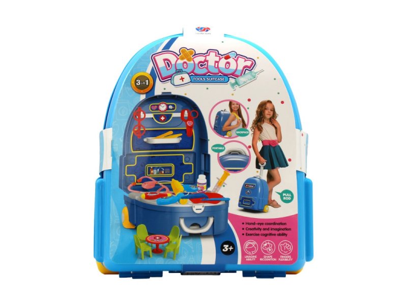 Kategorija Setovi za igru Uzrast 3 Karakteristike Mali lekari će pronaći sve što im je potrebno za hitnu upotrebu u ovom sjajnom doktorskom setu 3u1. Ovaj sjajni set lako se može poneti bilo gde. Pribor iz ovog