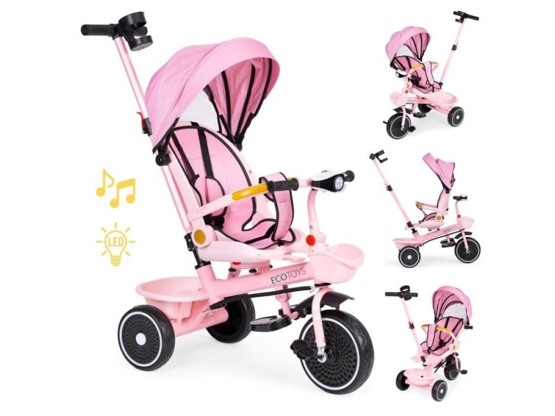 ECO TOYS 2u1 tricikl sa rotirajucim sedistem i sklopivom tendom Pink, ECOTOYS
