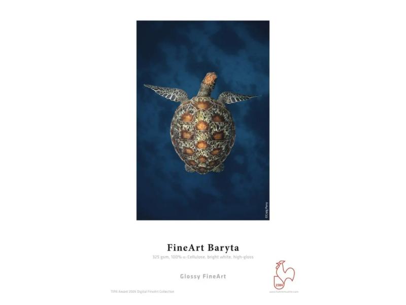 Tip FineArt inkjet papir sa visokim sjajem Karakteristike Materijal 100 α-celuloza Gramatura 325 g m² Debljina oko 0,41 mm Boja Prirodno bela Površina Glatka, sa visokim sjajem Premaz Premium inkjet