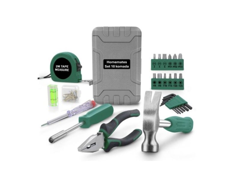 HOMEMATE Set ručnih alata 10-u-1 – prenosivi komplet, klešta, metar, šrafcigeri i torba za odlaganje