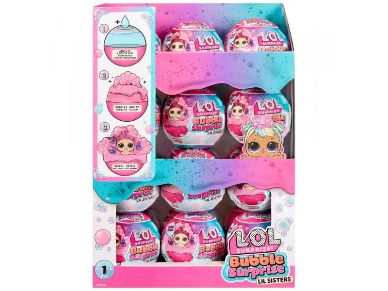LOL Surprise Bubble Surprise Lil Sisters Ove bebe sestre spremne su da plivaju u moru šarenih mehurića koje vi stvarate. Sipajte vodu u vrh vaše LOL Lopte iznenađenja a zatim gledajte kako reakcija mehurića