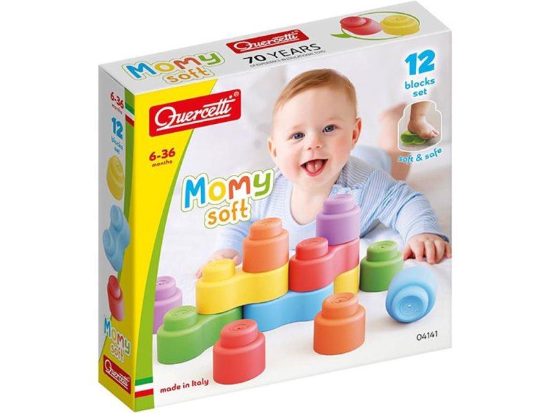 Mekane kocke Momy su savršena igračka za radoznale mališane Ove mekane i sigurne kocke su idealne za uzrast od 6 do 36 meseci. Set se sastoji od 12 kocki u različitim bojama, koje su pogodne čak i za pranje