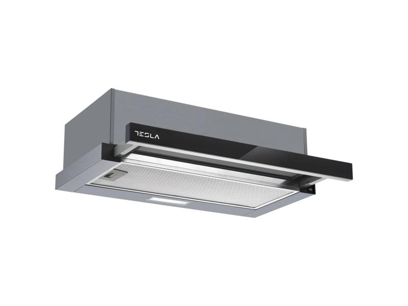 Model TESLA DT600AXB Tip Teleskopski aspirator za ugradnju Karakteristike Kapacitet usisavanja 350 m³ h Broj motora 2 Osvetljenje LED svetla Nivo buke 71 dB Boja siva crna Dimenzije Širina 60 cm Dubina